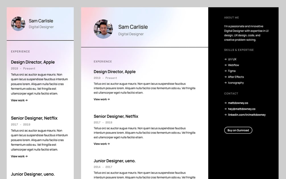 Apply: A minimal and interactive resume for designers, photographers, artists, and illustrators